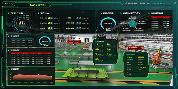 打造数字孪生车间或车间孪生大屏,实现车间运营过程中的设备监控、物料监控、质量监控、RGV监控、异常预警、安全应急以及车间生产计划管理功能。